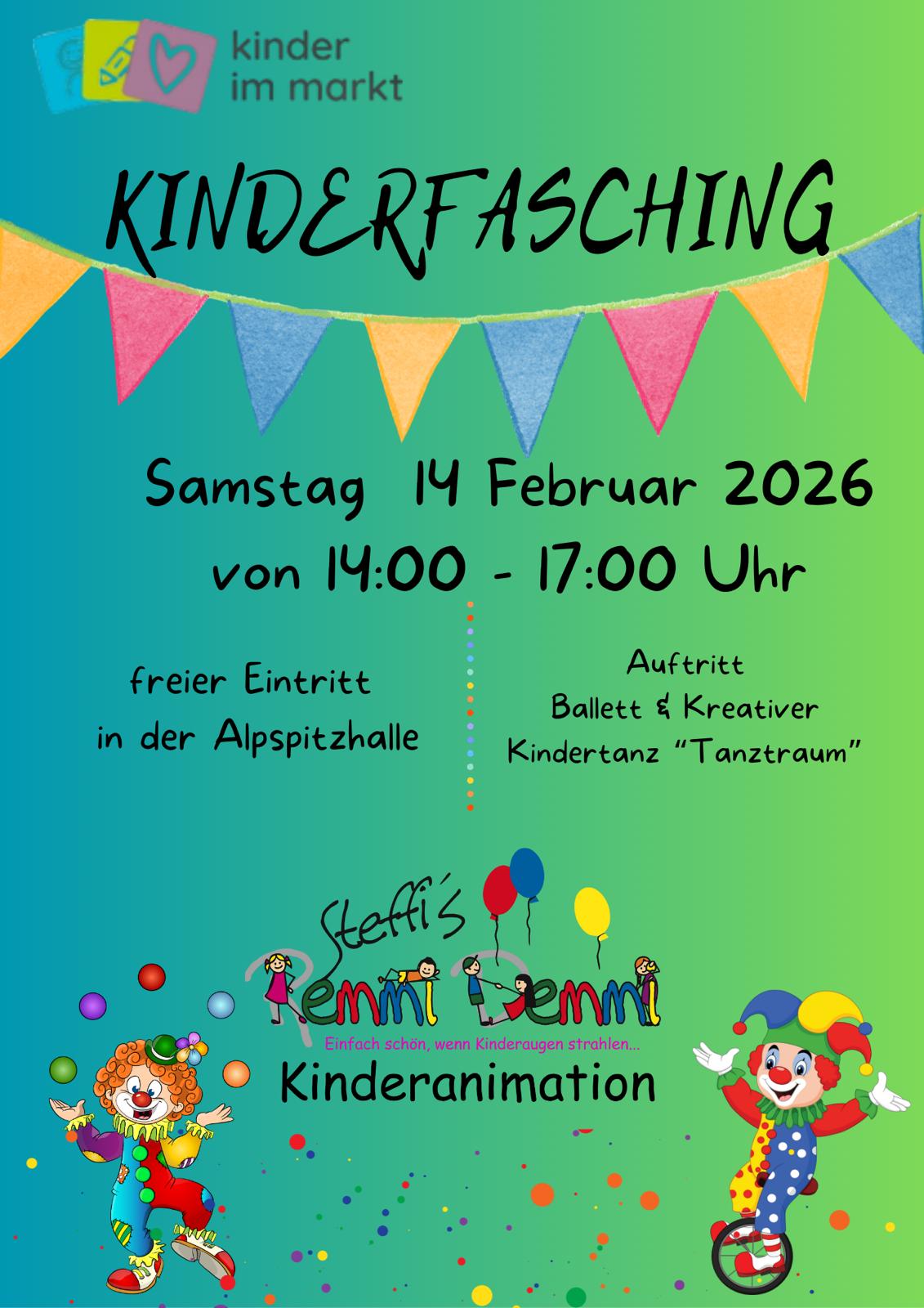 Wie jedes Jahr zur Faschingszeit heißt es auch 2026 wieder: Bühne frei für den Kinderfasching in der Alpspitzhalle!
